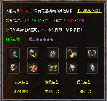 | 沃玛-祖玛-赤月-魔龙首饰即可兑换成魔龙魂晶,全靠打! |