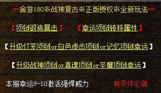 | 【综合服务】可以把灯笼、虎齿、记忆、战神系列项链,升级到幸运+3。 |